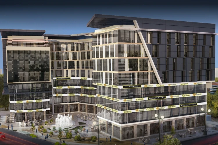 This vertical split keeps noise and crowds away from office tenants while retail stays accessible at street level. The ground floor opens directly onto the approach from Suez Road, giving visibility to traffic entering the Capital from Cairo.